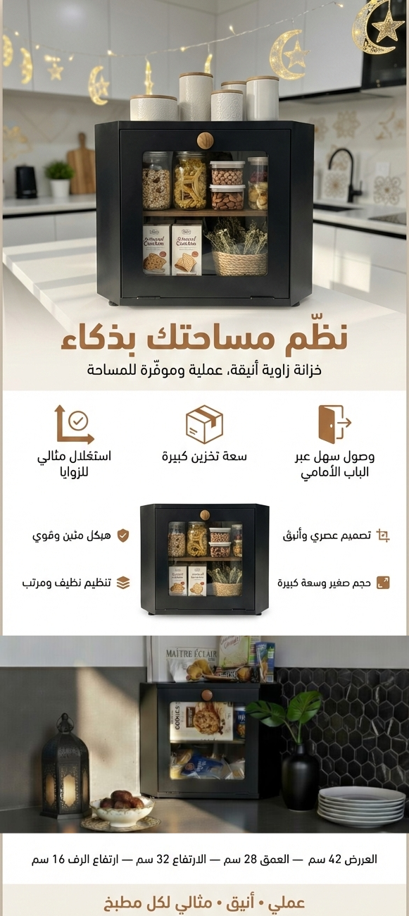 Optimisez intelligemment votre espace avec ce meuble de coin moderne, conçu pour exploiter parfaitement les angles entre vos étagères ou sur votre plan de travail. Son design compact et élégant s’intègre facilement dans toutes les cuisines, tout en offrant un espace de rangement pratique et organisé.